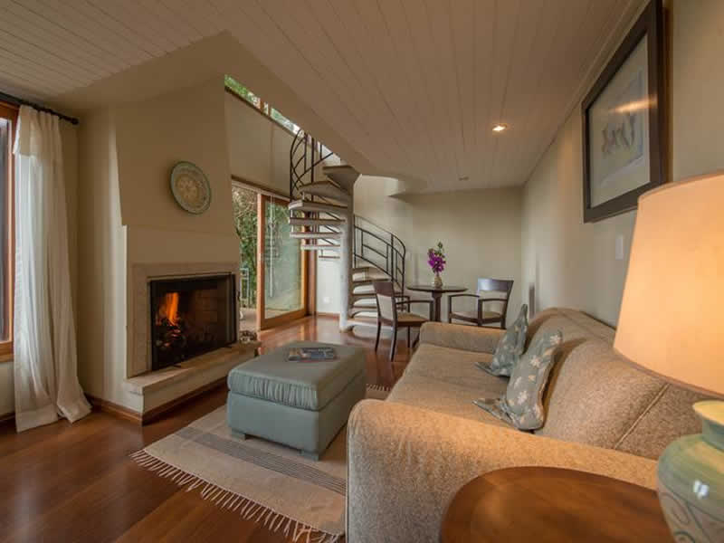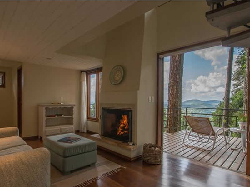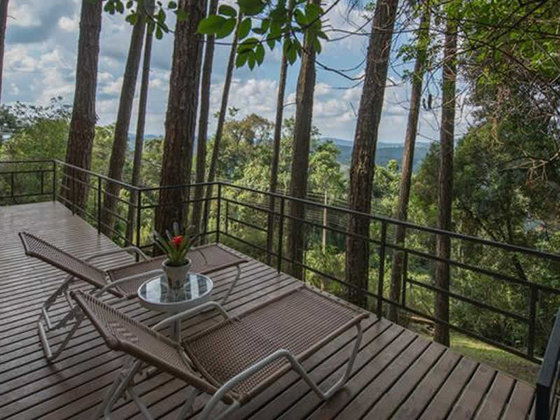 Esta Morada possui 2 andares: No andar superior varanda com Chaise e vista panorâmica / no andar inferior deck com duas espreguiçadeiras.