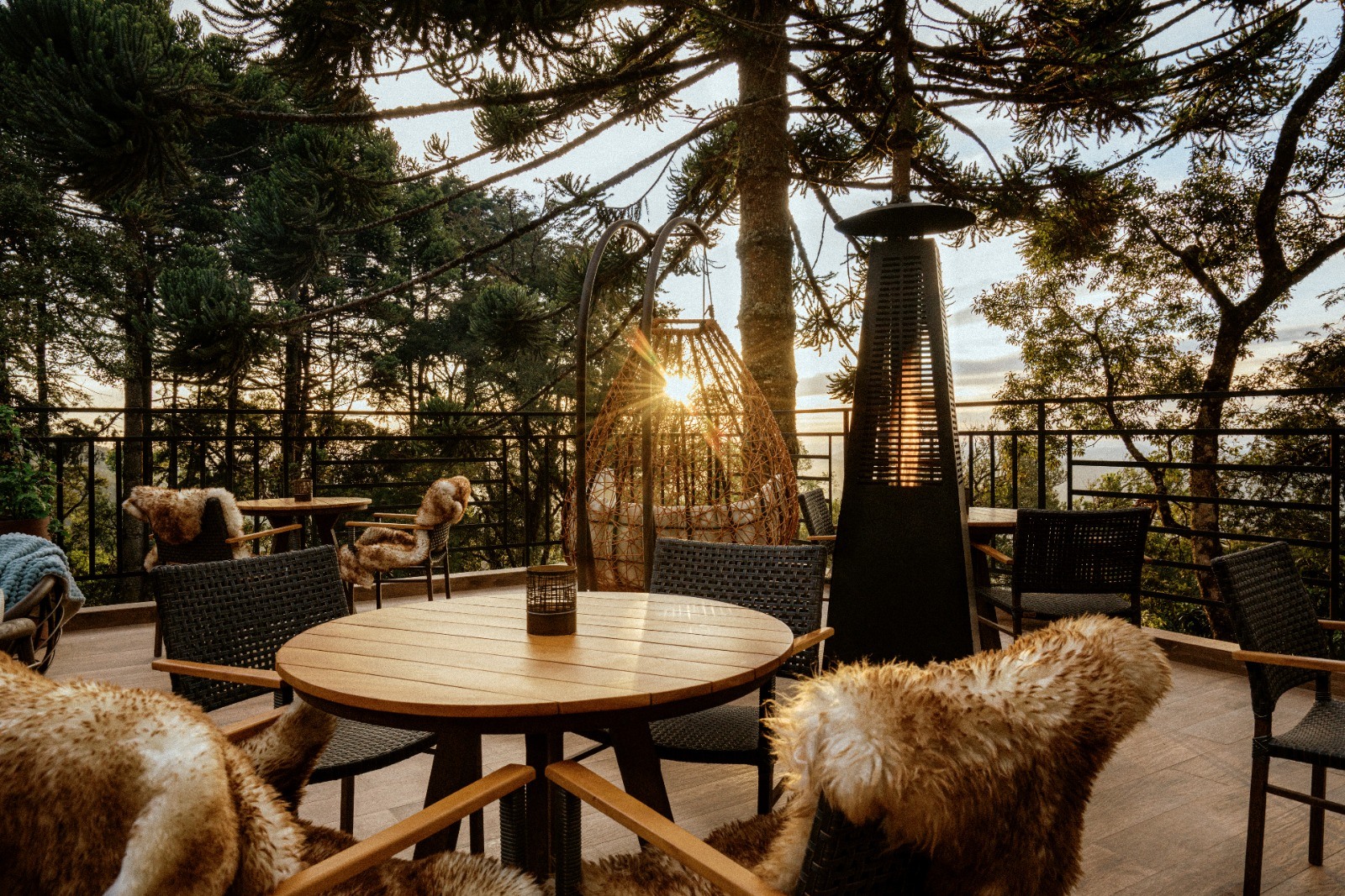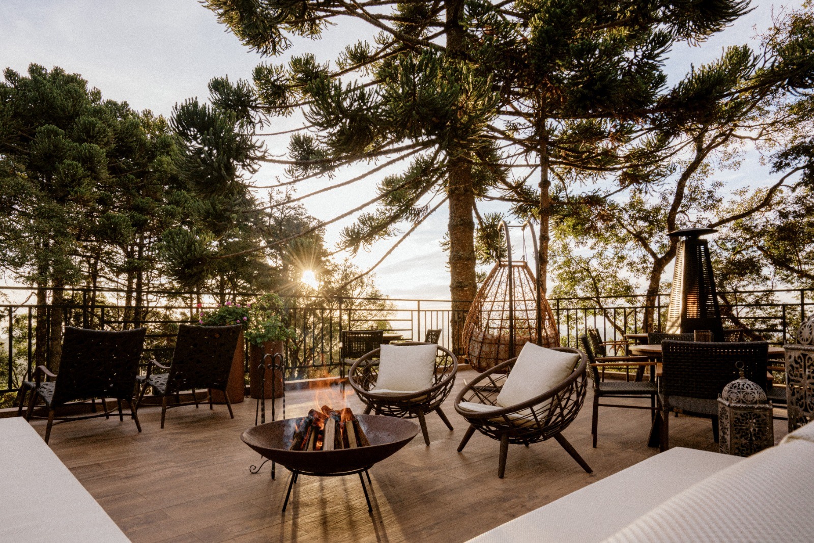 Neste maravilhoso terraço, nossos hospedes podem saborear deliciosos petiscos e apreciar excelentes vinhos enquanto contemplam um pôr do sol indescritível. A noite, todo iluminado, é um convite ao romance, com fogo de chão, torres de calor e aquela cobertinha para curtir o frio.